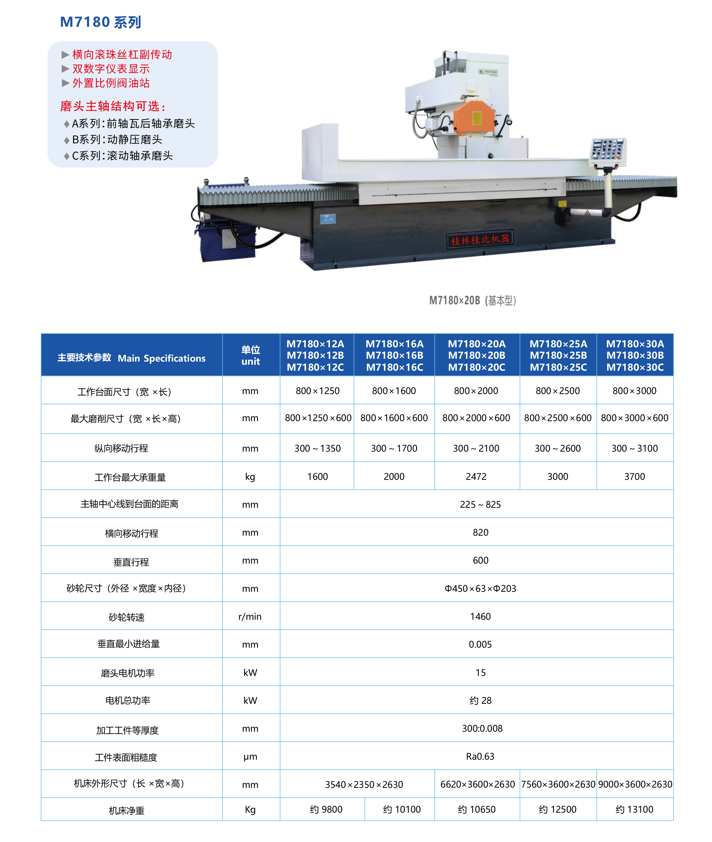數(shù)/程控臥軸距臺平面磨床(磨頭移動式)M7180系列