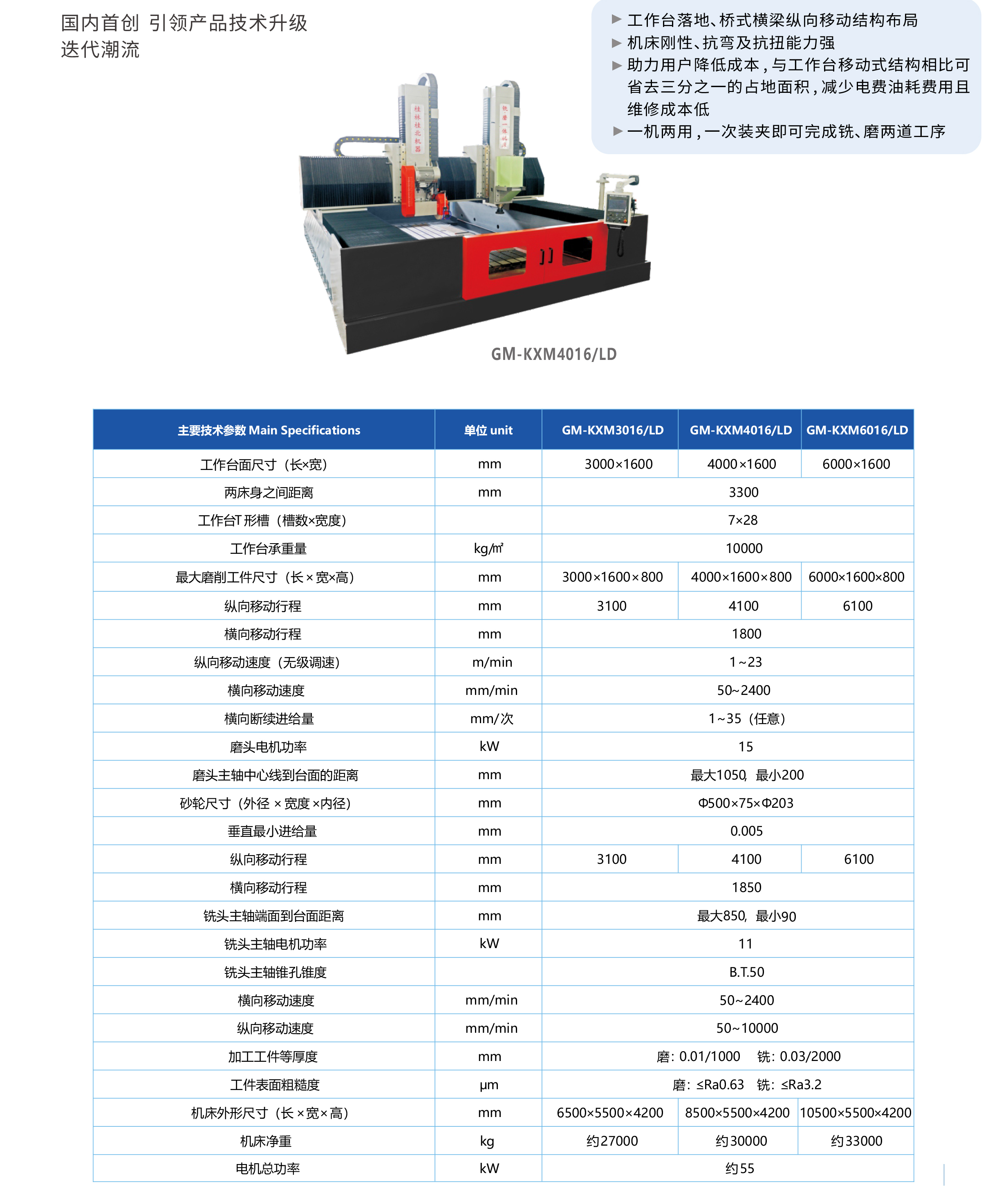 橫梁移動式落地數(shù)控精密銑磨復(fù)合機(jī)床GM-KXM4016/LD